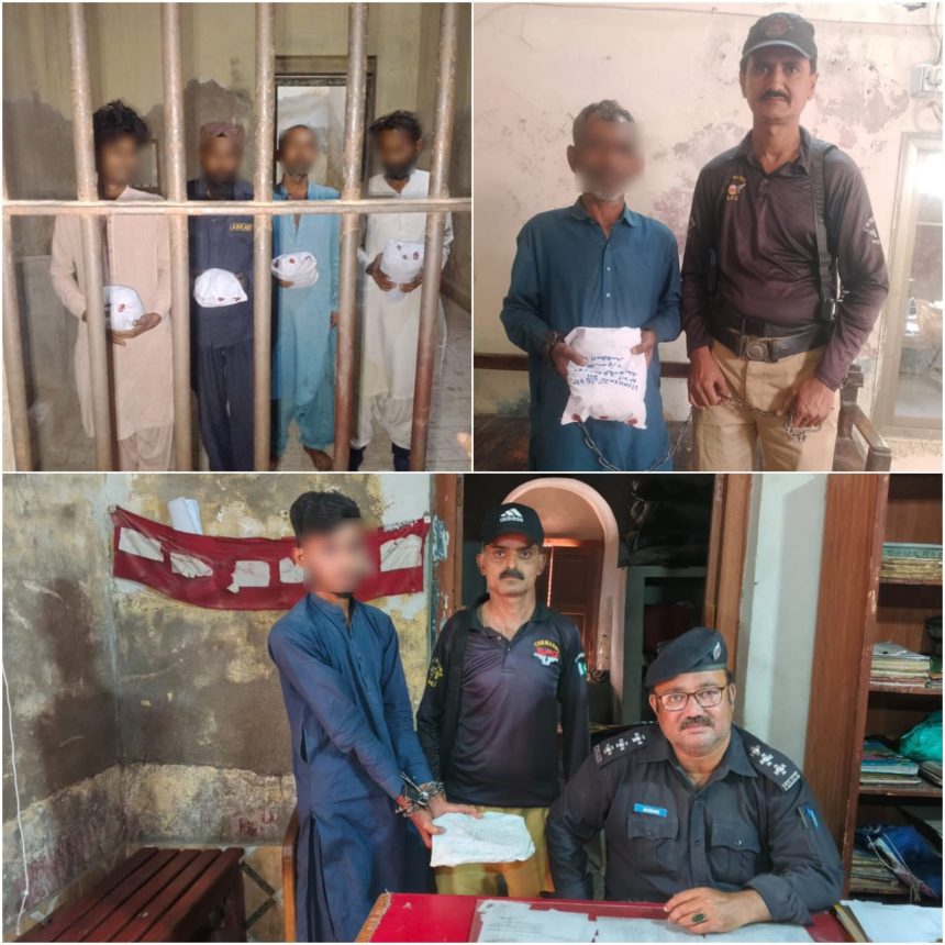Sukkur Police carried out successful operations against drug-related activities across different areas of the district, resulting in the arrest of six suspects and the recovery of a significant quantity of narcotics. Cases have been registered against all arrested individuals under the relevant narcotics laws.